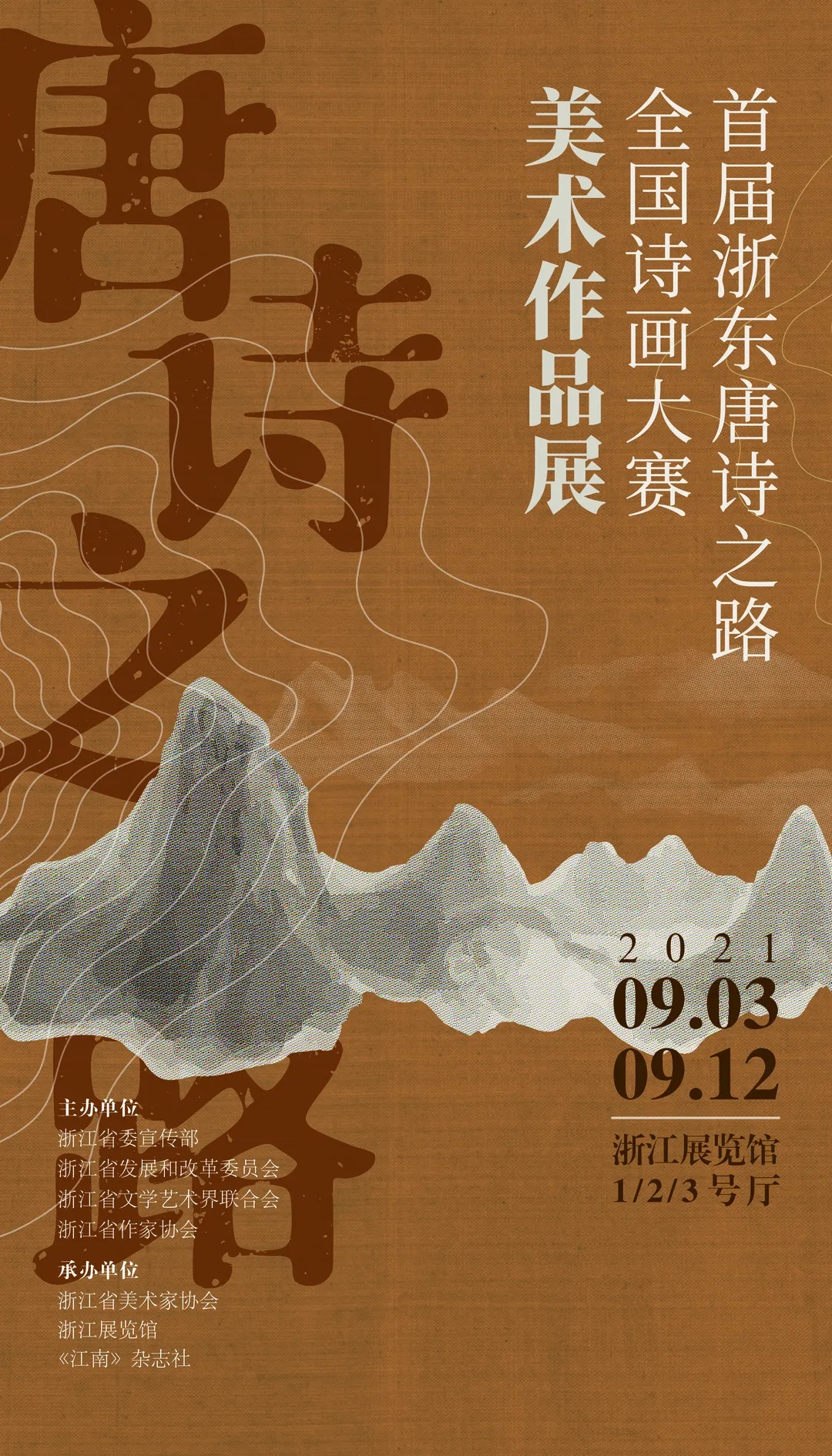 为建设“山水画卷、古越文脉、吟诵千载、传承万代”的“浙东唐诗之路”,传承发展深厚的优秀传统文化,擦亮“诗画浙江”金名片,特举办全国首届“浙东唐诗之路”全国诗画大赛。9月3日上午,首届浙东唐诗之路全国诗画大赛美术作品展在浙江展览馆启幕。本次展览由省委宣传部、省发展和改革委员会、省文联、省作协主办,省美协、浙江展览馆、《江南》杂志社承办。