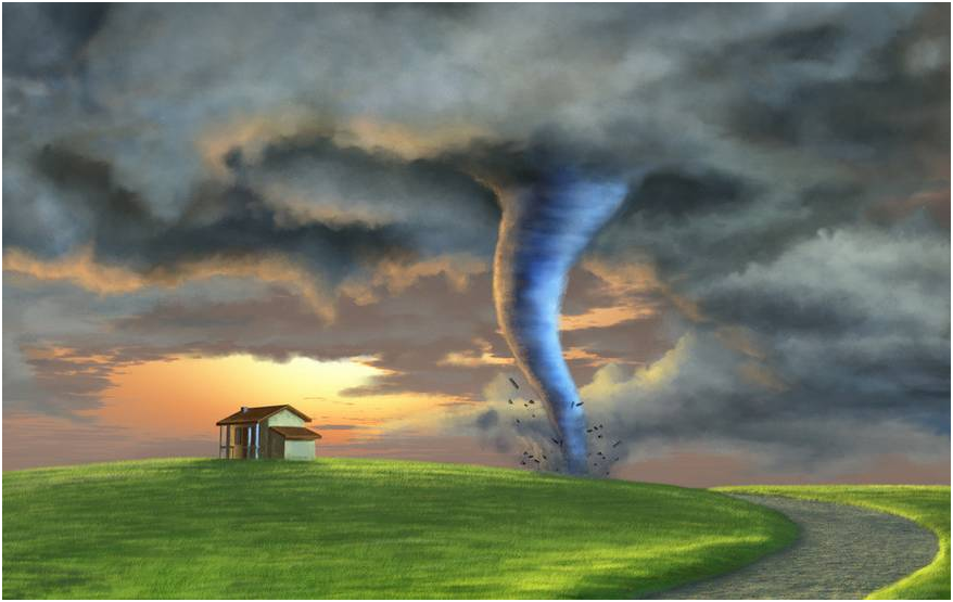 龙卷风,强风景,一旦来袭进地害室内躲避离门窗,电源水源全关掉室外趴在低洼处,汽车里面不可靠。