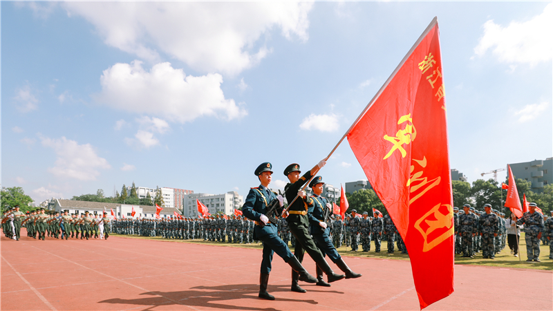 2021年9月30日上午,2021级新生军训阅兵暨表彰大会在田径场隆重举行。73021部队政治工作部副主任汤超,73021部队参谋部部队管理科参谋潘纯冬,军训团团长张坤,执行院长黄爱平,学院党委书记、副院长、军训团政委谢鑫,副院长、军训团副团长王敏,副院长徐晓斌、崔海辉,军训团参谋长金凯瑞,各分院、处室负责人等出席。