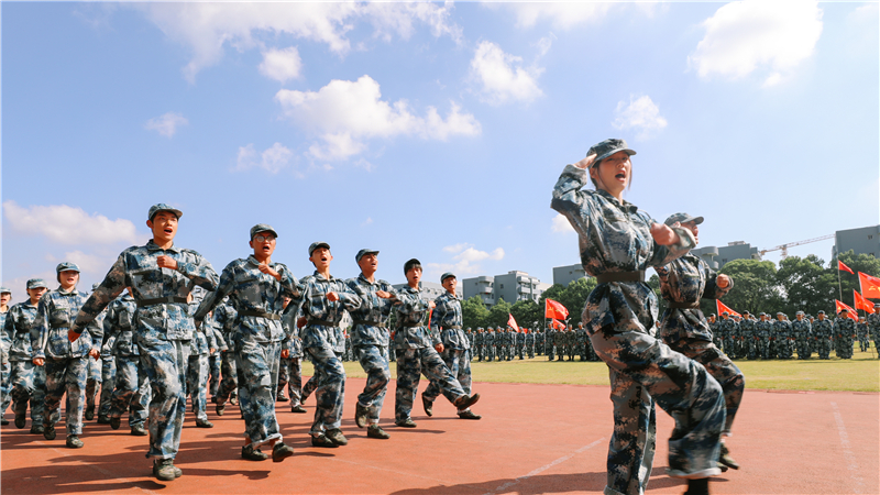 党委书记、副院长谢鑫作军训总结。她说,今天是烈土纪念日,一个有希望的民族不能没有英雄,一个有前途的国家不能没有先锋。那些浴血奋战英勇牺牲的革命先辈, 他们用英勇和热血为我们迎来希望,用生命和无畏捍卫了民族的尊严,没有他们,就没有我们今天幸福的生活。虽然我们无法一一说出他们的名字,但希望今天能唤醒我们的记忆,让我们的人生能不断仰望崇高,不断砥砺精神。十天来,教官们身体力行,头顶烈日,以身作则:班助,班主任、学工秘书、书记、学生处同志们,放弃了休息时间,起早贪黑穿梭在操场上,用各种方式陪伴着“小爱依”们。整个军训团安全、圆满地完成了各项军训任务。感谢教官、感谢所有服务保障军训团各项工作的教职工、学生,感谢所有军训士兵。军训已经结束,大学生活即将开始!希望同学们把军训过程中培养起来的顽强意志、良好品格以及集体主义精神继续发扬光大;把军训过程中培养起来的组织观念、纪律意识以及团结协作精神继续发扬光大;把军训过程中培养起来的认真学习、刻苦训练以及勇争上游精神继续发扬光大;把军训过程中激发出来的爱国热情转化为强国行动。希望同学们认真扎实学好专业课程,努力提高专业能力、职业能力、社会实践能力、创新创造能力,做一个敢于担当社会责任、志在报效祖国、乐在服务人民的大学生。