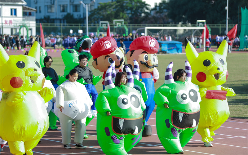 在激昂的运动员进行曲中,各分院、部、行政处室的运动员、师生代表队排列着整齐的方阵,迈着矫健的步伐,依次通过主席台。各方阵带着同学们精心准备的节目,在主席台展示各自的才艺与创意。