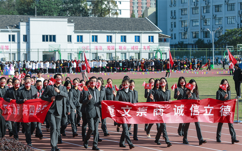 2021年11月11日,学院第二十二届田径运动会在田径场隆重举行。执行院长黄爱平,副院长王敏、徐晓斌、崔海辉,各单位、各部门负责人在主席台就座。王敏主持开幕式。
