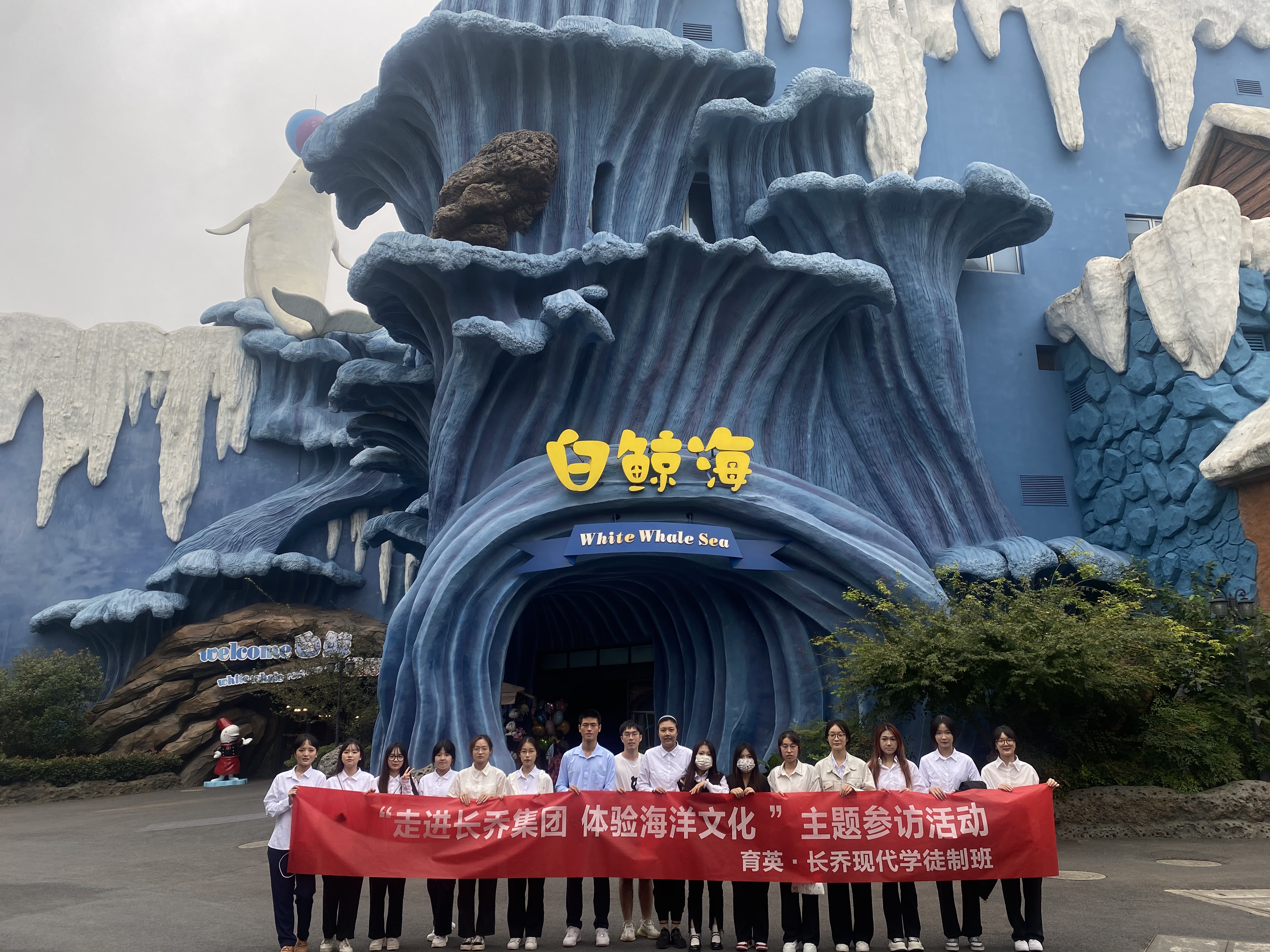 定向培养从企业文化认知开始,育英•长乔现代学徒制班(以下简称长乔班)在本学期迎来了长乔旅游投资集团有限公司定向培养的第一课——“走进长乔集团 体验海洋文化”主题参访活动。2022年9月29日下午,长乔班的16名学员在智慧旅游学院黄华院长的亲自带领下,前往杭州长乔极地海洋公园进行企业文化参访,得到了长乔总裁助理王燕茹、现场部经理蔡铁雨、人资部副主任李师师、人事主任张岳丽及其他工作人员的热情迎接。