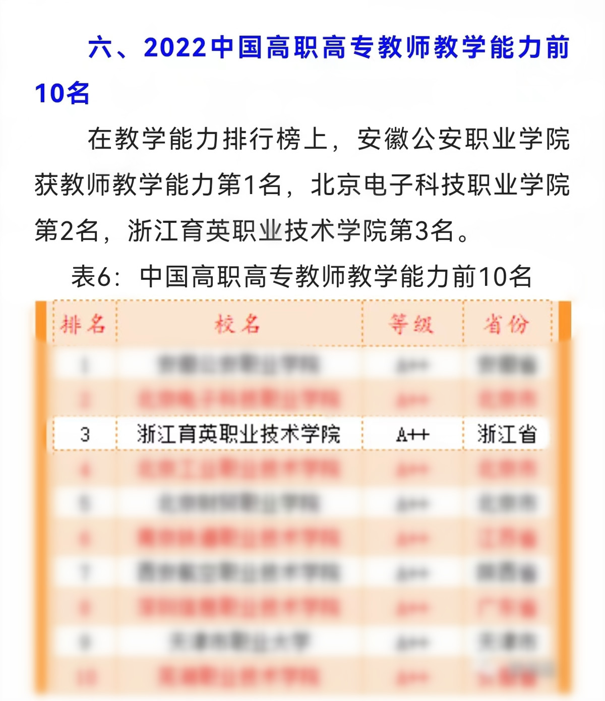 11月21日,武书连2022中国高职高专排行榜发布。我校在《武书连2022中国高职高专评价》中教师教学能力全国排第3名,综合实力纵览排名全国民办第2名,浙江省高职排第11名,财经类排第12名,全国1302所排第101名。