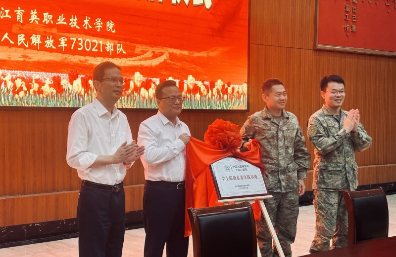 丁金昌、王敏代表学校与部队领导共同为学生职业素养实践基地揭牌。