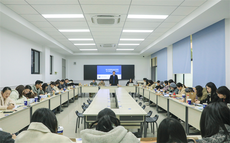 会议主题是强化职业教育类型特色、数字化升级教学改革,奋力推进学校内涵建设,实现学校高质量发展。