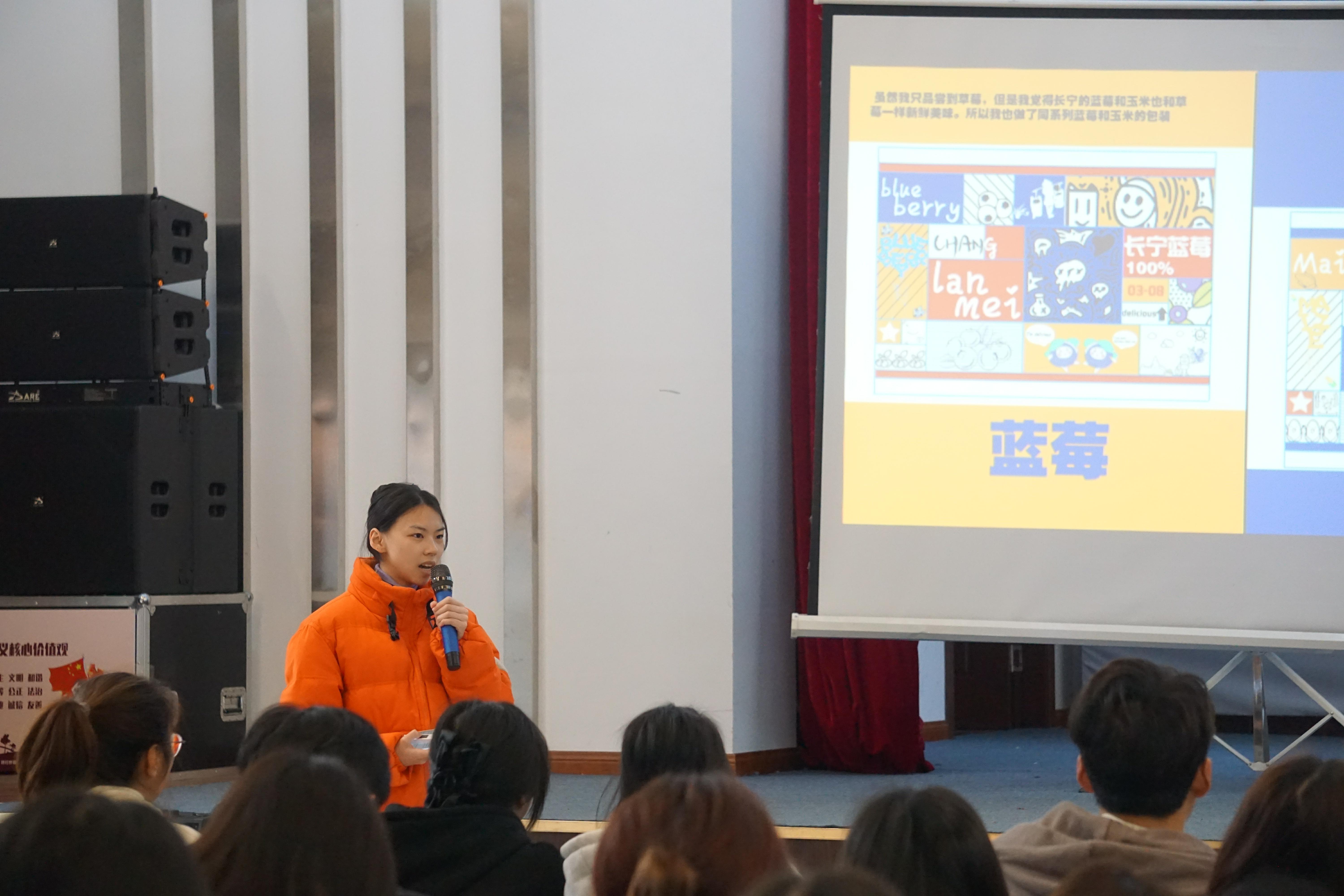 “这是一款集合线上销售思维与线下实体展示的全新农产品果蔬包装。好的设计都离不开调研,这次能在长宁村实地感受产品并进行设计,丰富了灵感,也让我更加喜欢上设计创作。”王苏慧说。