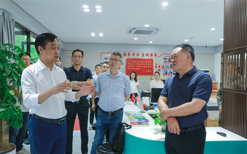 郭国松一行参观了校史馆、实训室,查看了我校与钱塘区退役军人事务局共建的钱塘区高校退役军人服务站(为全省首家提供全域服务的退役军人服务站)和高教园区退役军人创业孵化园(全省首家面向下沙高教园区14所大学的大学生退役军人创业孵化园)。参观过程中崔海辉汇报了我校服务大学生退役军人职业技能培训、升学指导、就业创业等工作。
