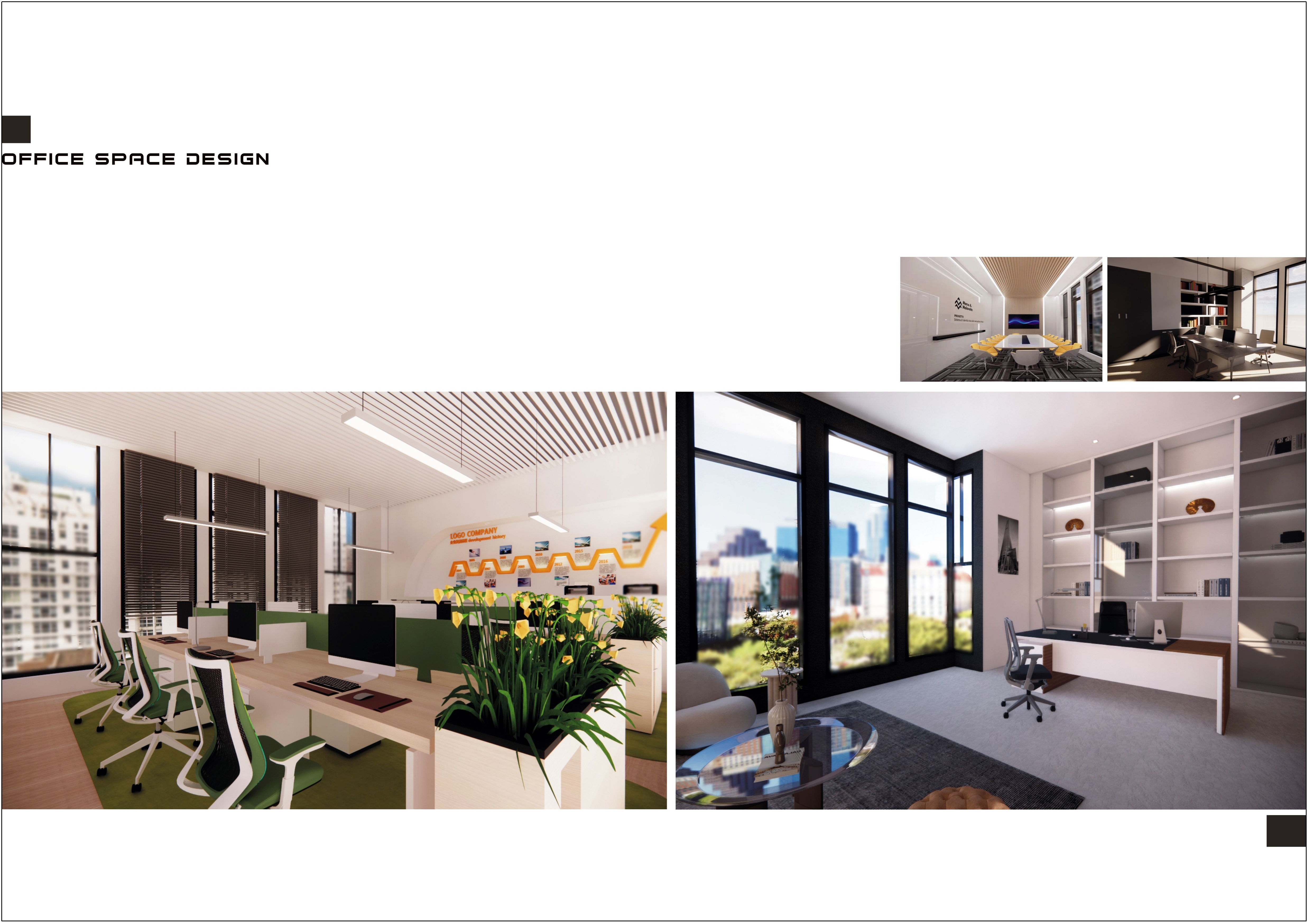 2.办公空间设计的类型及组成为设计模块;围绕办公空间设计企业文化理念的需求展开,了解与掌握办公空间设计的方法和程序。增加对办公空间设计的属性及办公空间环境设计意识;重点进行办公空间在垂直布局规划中的形态体现,注重设计主题元素在空间上的应用;