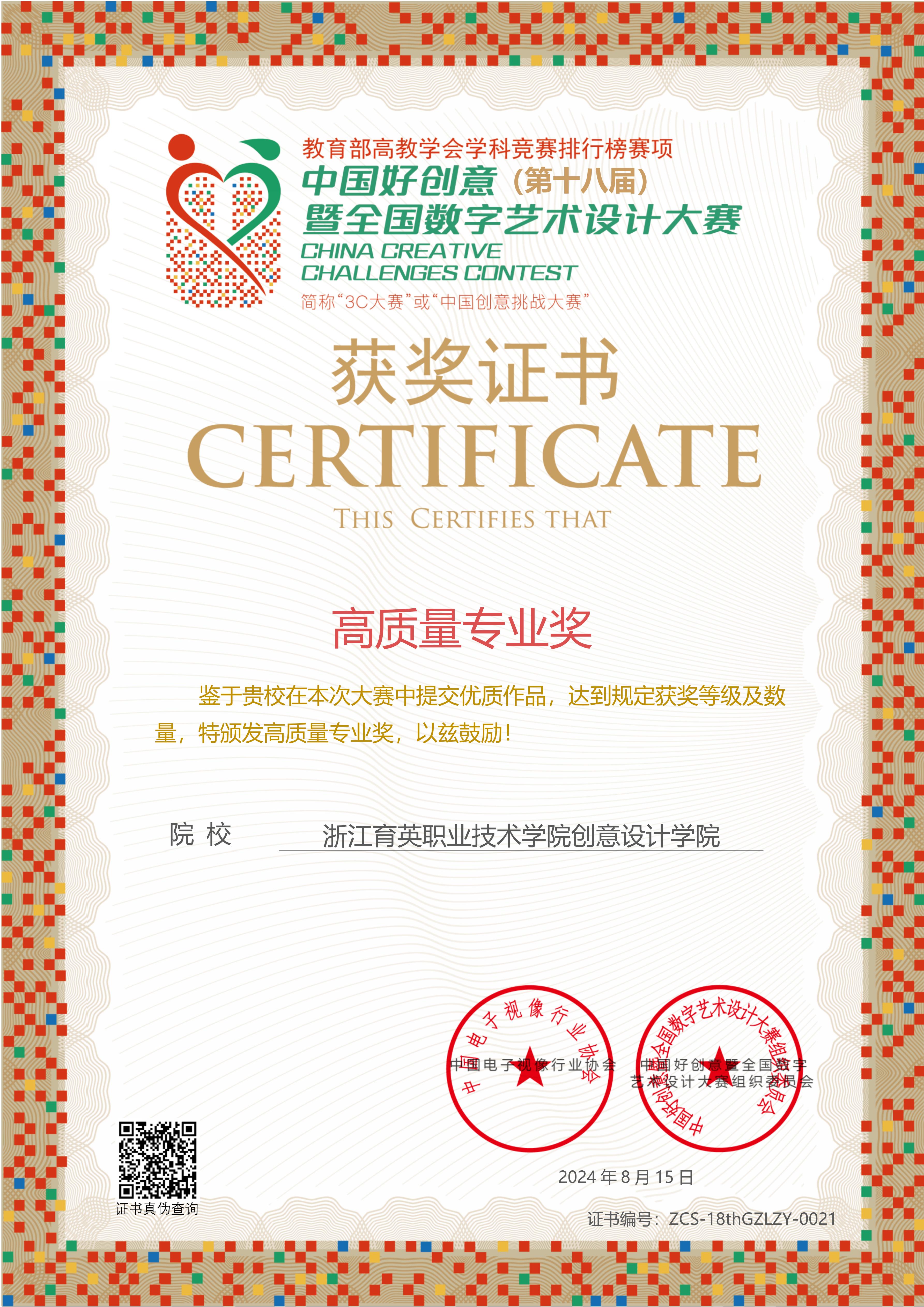 中国好创意暨全国数字艺术设计大赛(China Creative Challenges Contest 简称3C大赛或“中国创意挑战大赛”),是入选教育部中国高等教育学会发布的《全国普通高校大学生竞赛分析报告》赛项,也是我国第一个以数字艺术、数字设计、数字创意、数字媒体以及数字技术创新领域各专业综合类规模大、跨学科、多专业、参与院校多、影响广泛的权威赛事,更是我国第一个将比赛上升到哲学高度的赛事,还是第一个免费为参赛作品提供版权保护与存证的大赛。