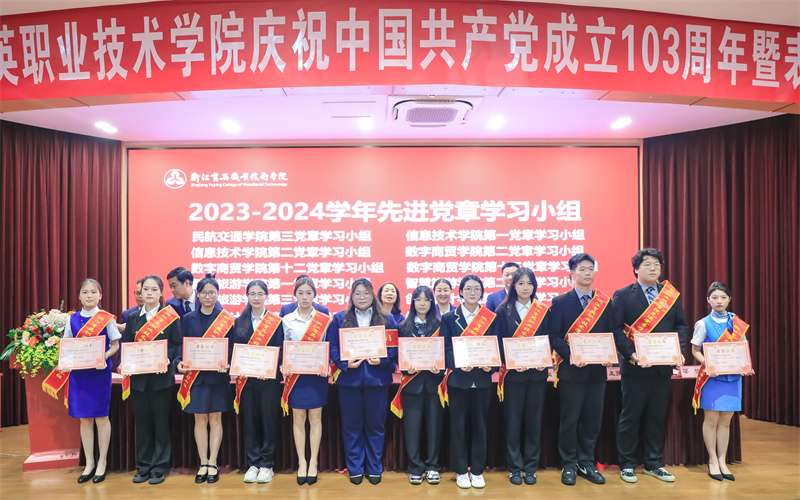 邬佳宣读表彰决定。2024年度浙江省高校思政微课大赛获奖者及集体代表,2023年度浙江献血总量标杆高校、千人献血率标杆高校获奖集体代表,2023年度浙江省志愿服务工作突出贡献获奖者,中共杭州市委教育工作委员会2023年度教育系统“两优一先”获奖者和2024年党员教育电视片(微党课)优秀作品获奖者及集体代表,学校2023-2024学年先进基层党组织、优秀党员、优秀党务工作者和先进党章学习小组获奖者及集体代表受到表彰。