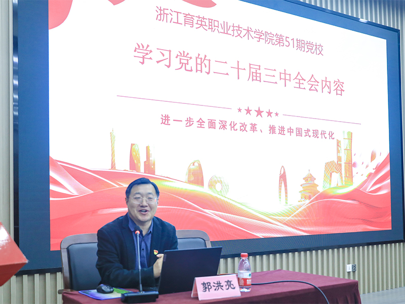 最后,马克思主义学院思政教育教研室讲师郭洪亮为学员带来了精彩的第一课《学习党的二十届三中全会内容——进一步全面深化改革、推进中国式现代化》。