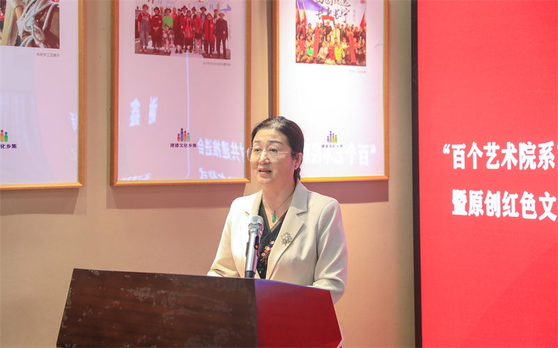 建德市人民政府副市长李俊致辞。她表示,2018年以来,育英师生走进建德,开展了一系列富有成效的教学实践活动,并相继建立了党员志愿者社会服务基地和教学实践基地。以长宁村为代表,学校携手建德各乡镇,是对乡村振兴战略的生动实践。师生们倾注智慧和灵感,将创意设计与长宁村的历史文化、乡村产业深度融合,不仅为长宁村带来了可观的经济效益,更在文化层面为当地注入活力,为长宁村进一步打响“互助长宁”品牌、提升村庄知名度和美誉度提供了有力帮助。