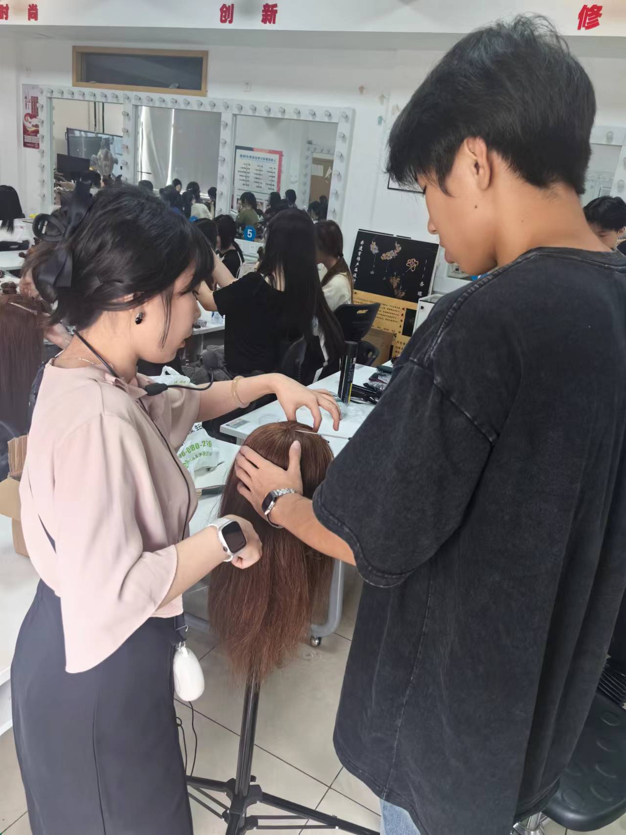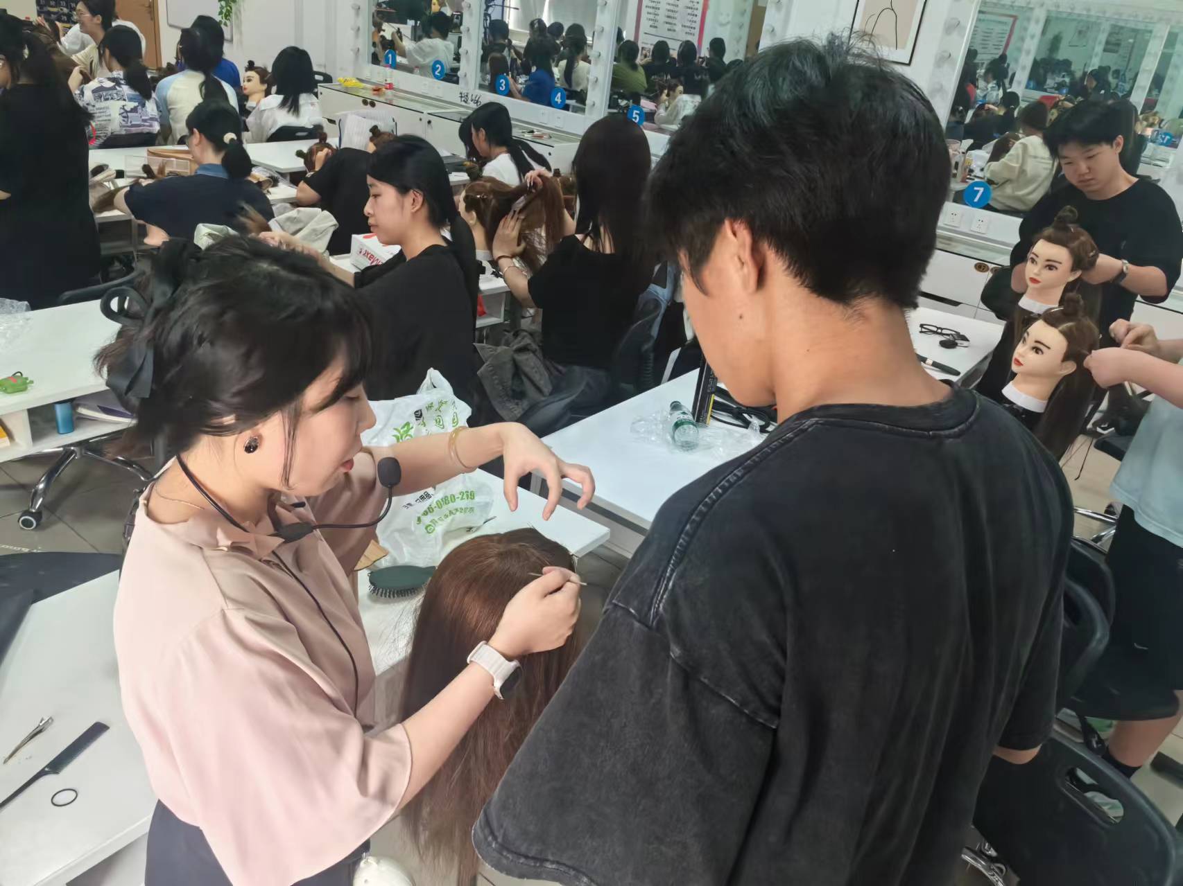 在宽敞明亮、设备齐全的实训环境中,每位学生都被配备了全套的发型设计工具与材料。在教师的悉心指导下,他们迅速进入角色,化身成为专注而富有创造力的“发型师”。学生们不畏艰难,勇于尝试,将所学理论知识灵活应用于实践,精心打造出一系列既符合时尚潮流又彰显个性的发型作品。