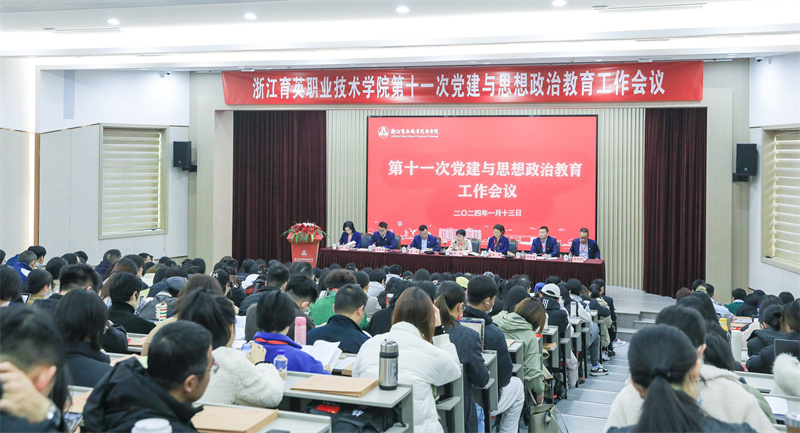 杭州市教育局党委副书记、副局长陈萍到会指导。她指出,会议设计得很好,既有专家报告,也有学校两年来不同专项工作的典型发言,还有对先进的表彰,主题突出、内容丰富。育英学院的党建工作是真抓实干的。党委用“大融合、大党建和大思政”的思路开展党建工作,取得了实效,成为全省高校党建示范高校,并作为全省六所高校之一、民办高校唯一,被推荐参加全国高校党建示范高校的评选。育英学院的人才培养是特色鲜明的。学校专业群布局紧贴行业需求,适应数字经济发展。学校高度重视与行业头部企业的合作,不断探索新的校企合作和育人模式,办学的社会影响力不断提升。她对学校党建与思政教育工作提出希望和要求。希望学校党委坚守立德树人初心,培育时代新人;践行培根铸魂使命,守牢红色根脉。要继续发挥党建特色和优势,不断提升党建工作质量和水平,深化“一融双高”,锚定“办好人民满意教育”目标,在“两个先行”中贡献育英智慧和力量。