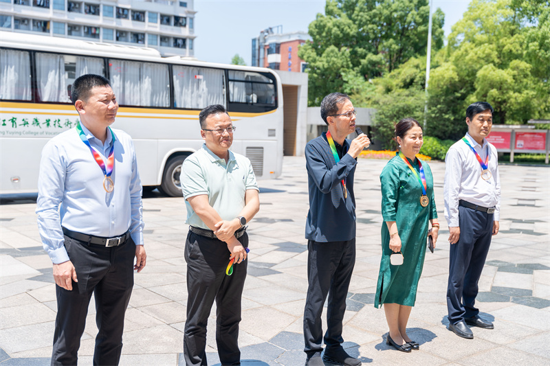 5月28日中午,学校为田径代表队举行了欢迎仪式。校长丁金昌,党委书记、副校长谢鑫,党委副书记、副校长王敏,副校长徐晓斌、崔海辉,公共教学部主任陈贤平,相关学院党总支副书记和师生代表参加欢迎仪式。