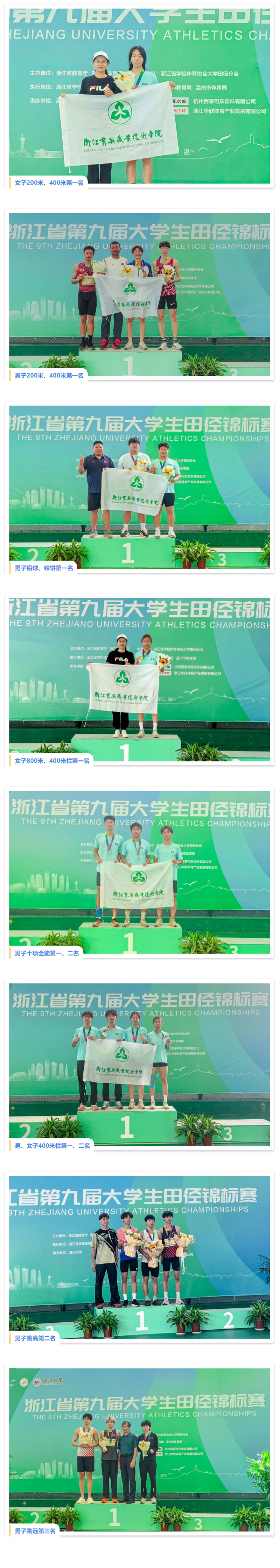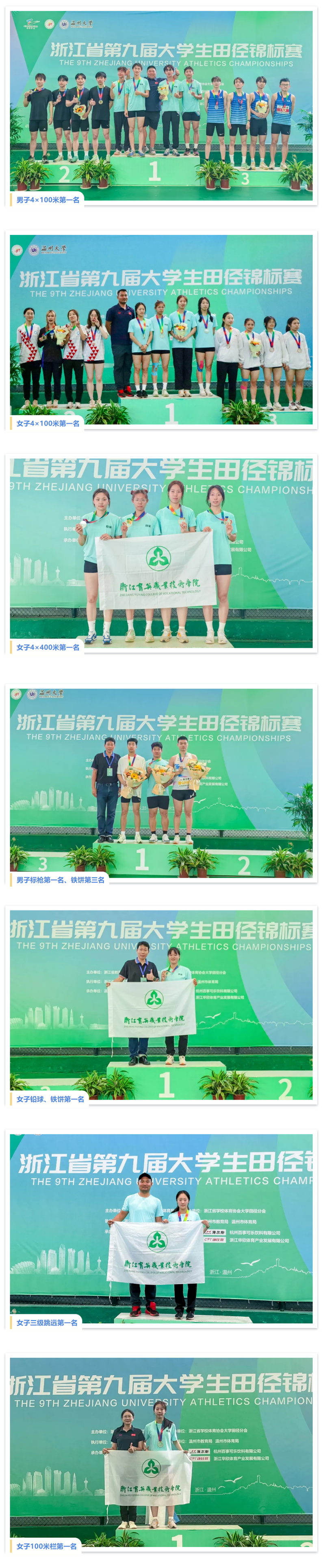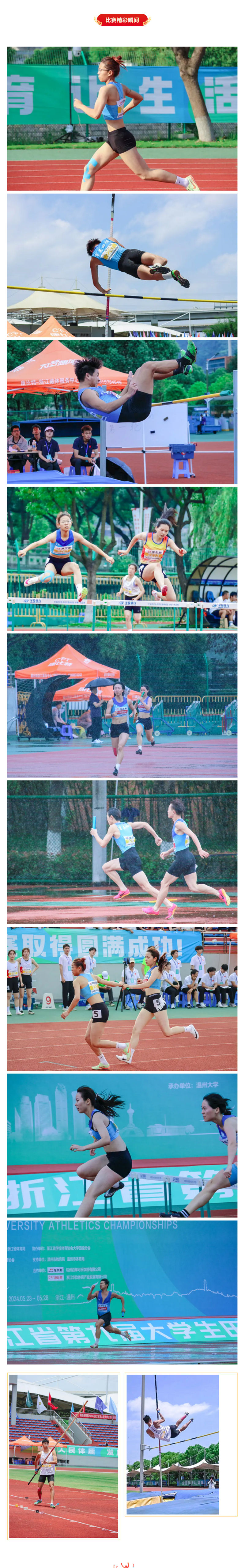 - 2023年10月24日-29日,浙江省第十六届大学生运动会田径比赛,15金7银6铜,破17项赛会纪录,总团第一。