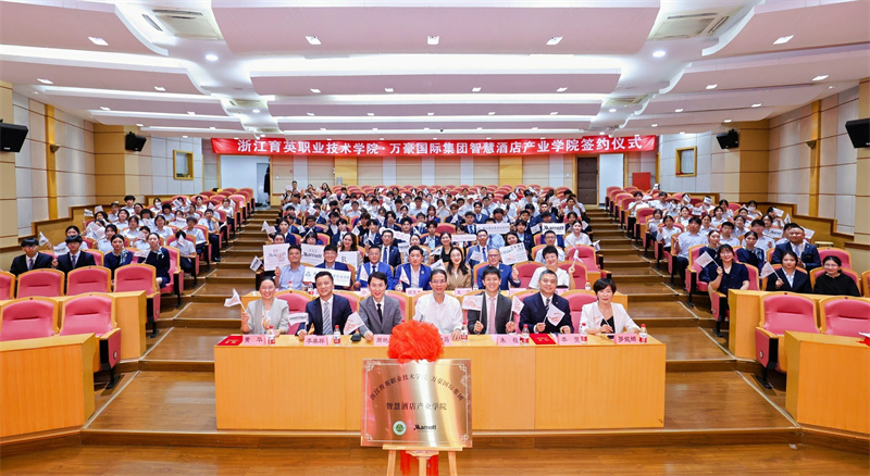 出席活动的酒店方代表有万豪国际集团大中华区校企关系高级经理朱程,万豪国际集团东区高级区域人力资源总监周艳军,万豪国际集团东区商务理事会杭州及安徽分会主席、杭州JW万豪酒店&武林万怡酒店总经理李罡,集团杭州区七家酒店总经理及人力资源总监。出席活动的学校代表有校长丁金昌,教务部主任罗妮娜,智慧旅游学院党总支书记、院长黄华,副院长周岚,党总支副书记、院长助理张丹,教务部主任助理夏灵盼,酒店管理与数字化运营专业负责人姜宏刚。“智慧酒店产业学院”第一批学员和智慧旅游学院师生代表参与活动。签约仪式由罗妮娜主持。