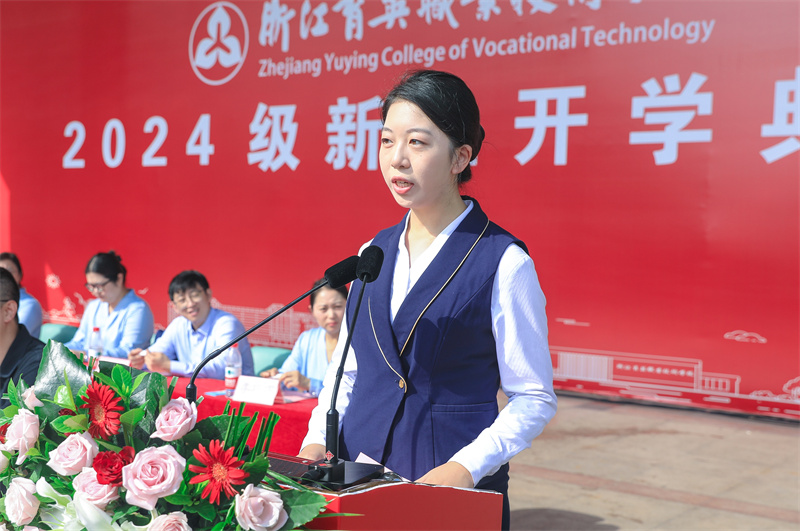 智慧旅游学院会展策划与管理专业教师,浙江省青年教师教学竞赛二等奖获得者、杭州市教育系统优秀教师、学校“我最喜爱的教师”陆佳怡发言。她鼓励同学们勇敢地迈出探索的步伐,主动去寻找、去学习、去发现、去质疑、去创新。她建议同学们明确目标,学会时间管理,保持健康的生活方式,努力让每一天都充满意义。