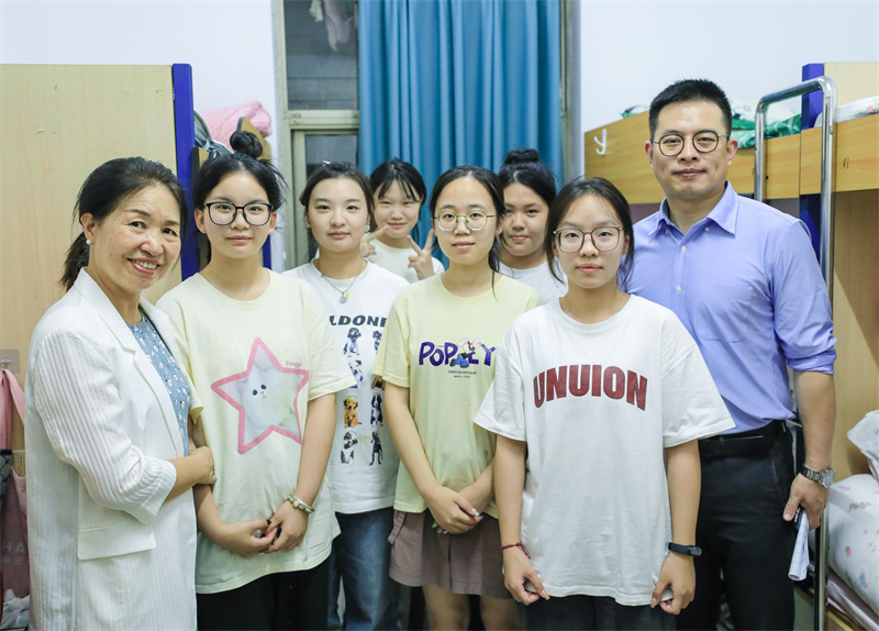 9月19日,校长丁金昌,常务副校长黄爱平,党委书记、副校长谢鑫,党委副书记、副校长王敏,副校长徐晓斌,纪委书记、副校长崔海辉,副校长严志嘉及全体中层干部走进学生寝室,与新生面对面交流,送去关心和问候,帮助新生尽快融入校园生活。