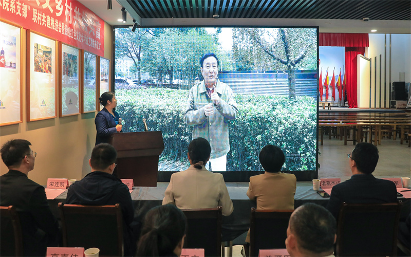 宋连凯介绍创意设计学院与长宁村联村共建项目成果及下一步工作设想。他说, 2020年以来,学院师生在长宁村设立8个助农共富工作室,赴长宁村累计开展活动40余场,参与师生1000余人次,帮助“互助洗衣房、互助养老、互助菜园”等“互助文化”落地生根,形成了“党建共建+设计助农”“互助长宁”经验模式,助力长宁村获批浙江省首批“红色根脉”强基示范村。下一步将继续深化“党建引领+设计助农”,通过艺术设计赋能长宁村文旅新业态,选派优秀年轻干部担任长宁村美丽乡村建设指导员,联合浙江省文化创意产业协会及高校力量,举办以长宁村乡村振兴为主题的设计赛事等。把长宁村的具体服务项目纳入学院各专业课程教学实践中,有目标、有指导、力求落地,帮助长宁村增加收益、扩大影响力。让更多年轻大学生走进长宁村,通过年轻创意激发乡村活力。希望创意设计学院与长宁村的共建项目不断深化、成为浙江高校百个艺术院系支部联村共建的示范项目、品牌项目。