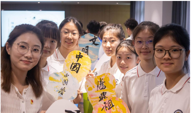 以“漆”为画,以“扇”为纸,一晕一染,无所遁形。入党积极分子楼又嘉同学详细介绍了漆扇的历史以及制作方法,学生支部叶琨老师在扇面上用毛笔写下具有中国特色的文字,组织同学们扇动千年之风雅,漆绘中华之韵味,传承独运之匠心。这次活动教育同学们坚定并增强文化自信,从中华优秀传统文化中不断汲取营养。