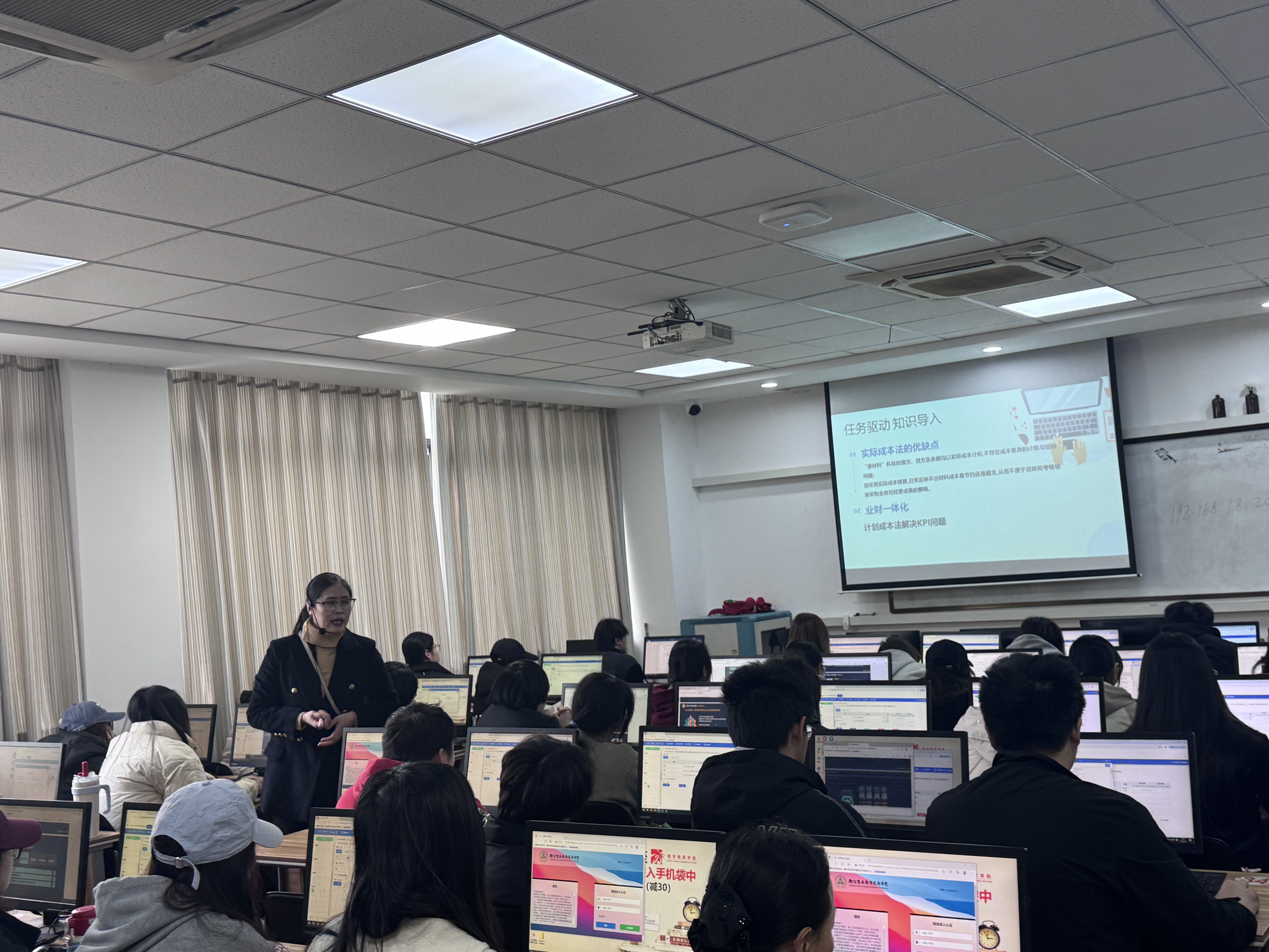 第七周,会计专业秦雪洁老师在 3216 教室主讲《企业财务实务》公开课。课程先复习实际成本法下存货账务处理,借大疆创新采购腐败损失案例,分析实际成本法优缺点。针对其成本监控短板,引入计划成本法,阐述原理优势,并结合具体采购案例,详细讲解计划成本法下存货财务处理,引入 “材料采购”“材料成本差异” 科目。通过现场指导学生处理实际业务案例,以及让学生独立完成任务指导手册业务,帮助学生掌握操作流程。