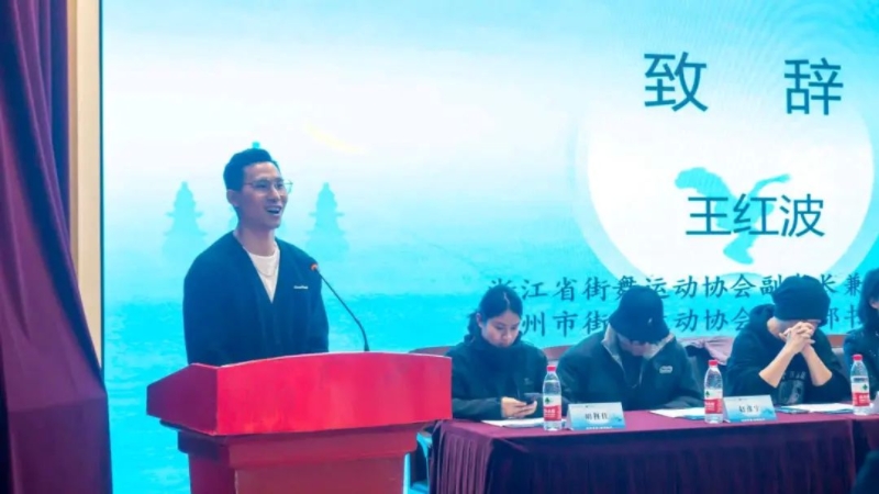 浙江省街舞运动协会副会长兼团工委书记杭州市街舞运动协会秘书长王红波致辞