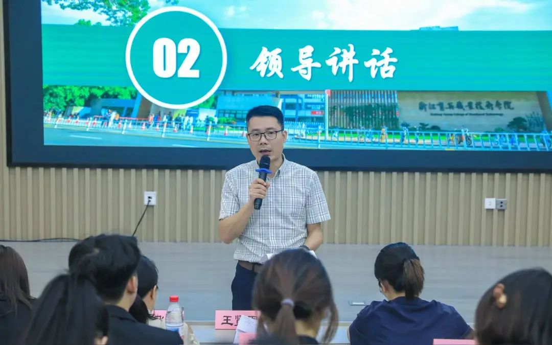 新任院报记者团团长何宇晗登台发表就职讲话。何宇晗围绕团队建设、内容创新等方面阐述未来规划,强调将凝聚成员力量、挖掘校园故事,提升院报影响力。
