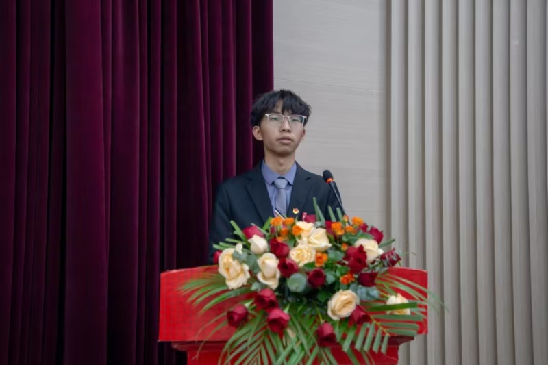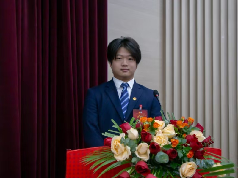 浙江经济职业技术学院学生会执行主席周浩天代表兄弟院校致辞。他提到育英学院治学严谨、传统优良,培养众多优秀人才,此次学代会意义重大。希望一直与育英密切合作、优势互补,推动创新发展。展望未来,期待深化合作,应对挑战机遇,加强思想引领、深化服务内涵、加强组织建设。