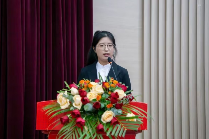 杭州市学联驻会主席苏李依致辞。她代表杭州市学联向大会的召开表示祝贺,对学校学生会在学校党委的正确领导、校团委的悉心指导下,为推进学生与校园发展共进共促做出的贡献表示肯定。