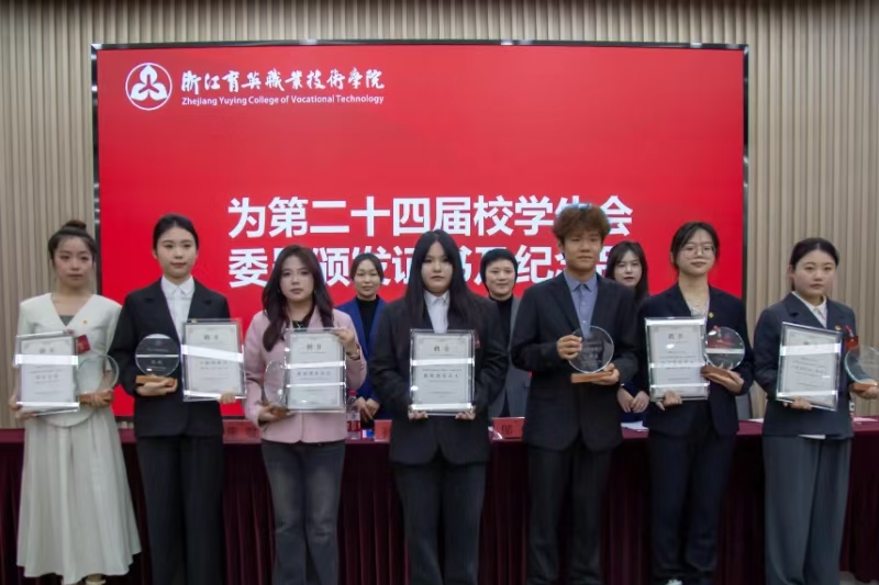 邬佳、孙钦、周舟为第二十四届学生委员会委员颁发证书。