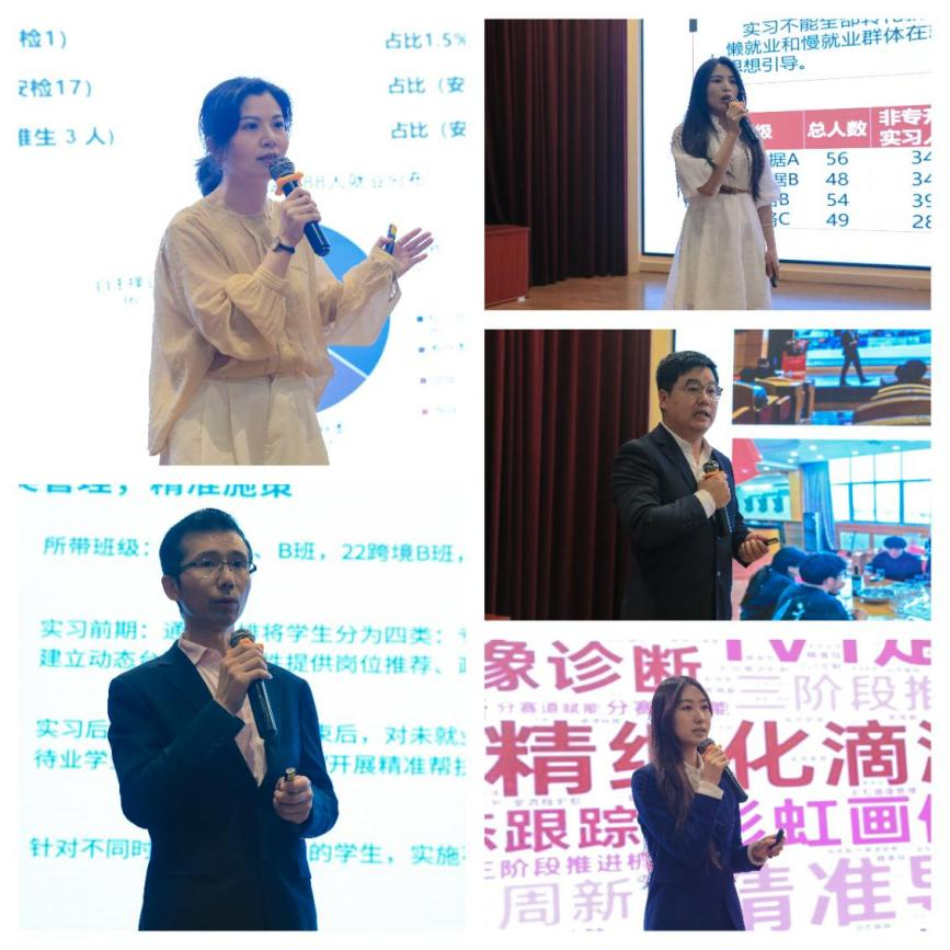 辅导员说环节,“生情熟知”要求辅导员在规定时间内精准陈述随机抽取学生的相关信息,主要考察辅导员对学生基本信息的掌握程度。随后,非毕业班辅导员围绕“主题班会、技能竞赛、社团活动”三大载体,从工作思路、举措、特色、成效等方面,系统呈现“三个十”育人工程实施效果;毕业班辅导员则聚焦实习就业管理,展示从“稳就业”到“优就业”的突破路径。辅导员说充分检验了辅导员队伍的专业素养,彰显了“以生为本”的育人初心。