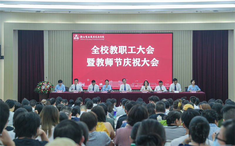 丁金昌作新学年工作报告。他分析当前高职教育新趋势、数智化时代行业新需求和人才培养新要求,并结合学校实际,提出下一步工作指导思想和基本思路,部署新学期重点工作任务。