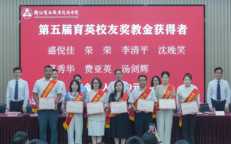 王敏宣读表彰文件。杭州市、杭州市教育局系统2025年市优秀教师等先进典型,第十二届“我最喜爱的老师”,第五届育英校友奖教金获得者受到表彰。