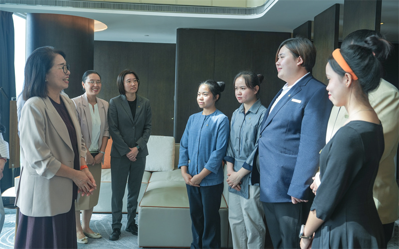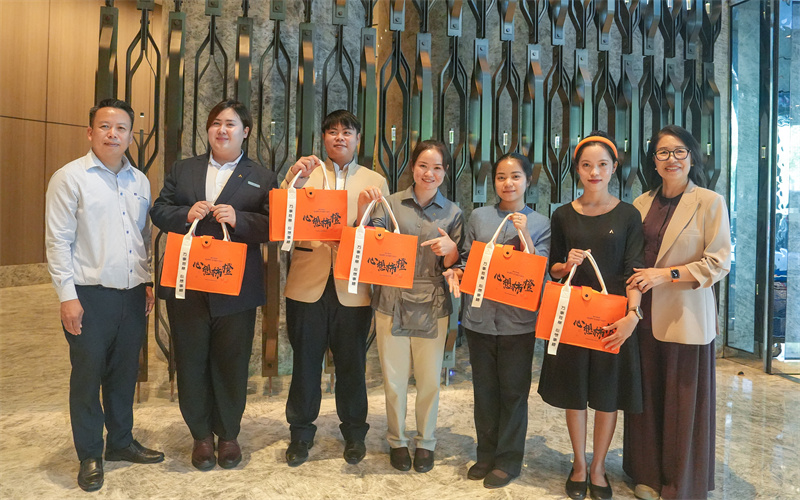走访中,桑迪帕详细了解学生工作与生活情况,对学生在高规格酒店环境中从容履职的表现表示欣慰,高度评价其中文水平与专业技能的显著提升。他表示,亲眼见证了学校为老挝留学生量身定制的人才培养方案成效,对方案的科学性与实效性予以充分认可,同时嘱咐学生珍惜机遇,精进语言与技能,为未来职业发展打下坚实基础。