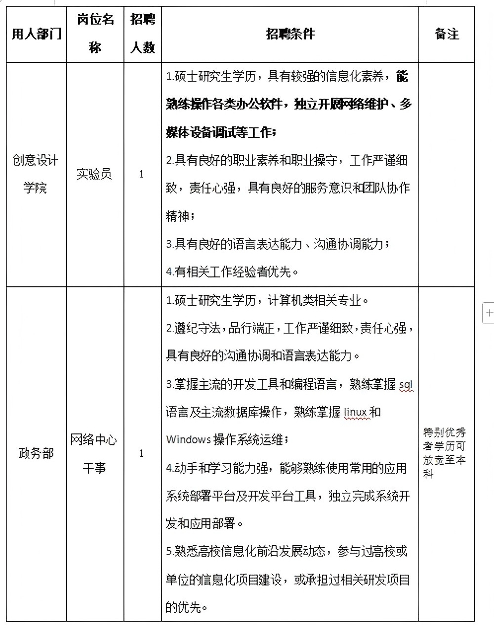 一、招聘岗位及条件