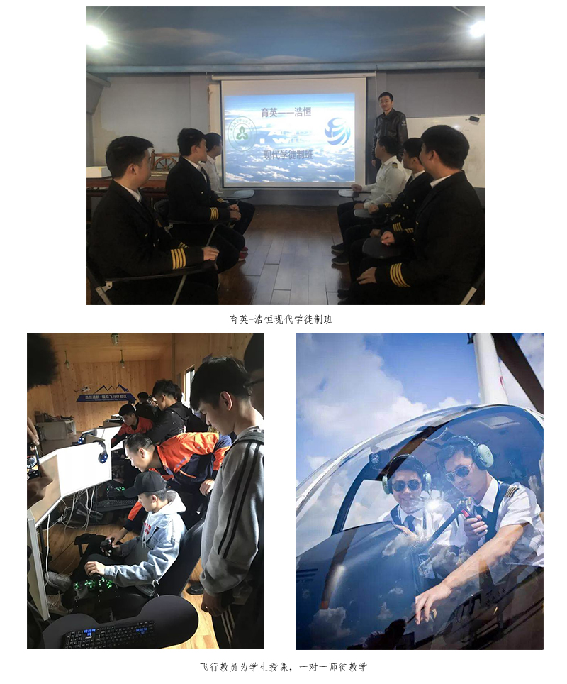 我院与杭州新联通航有限公司、中徽通用航空有有限公司、南航艾维国际飞行学院、美国量子直升机学校等公司签订现代学徒制培养协议,联合实施现代学徒制培养。根据通用航空直升机驾驶员的岗位特点,学生入校后即可与通航企业接触,从理论学习阶段开始就有企业飞行教员为学生授课,一对一师徒教学,质量有保障。